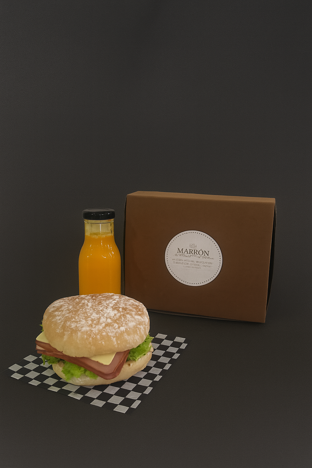 • Sándwich en pan artesanal con triple jamón, doble queso, salami, lechuga y tomate