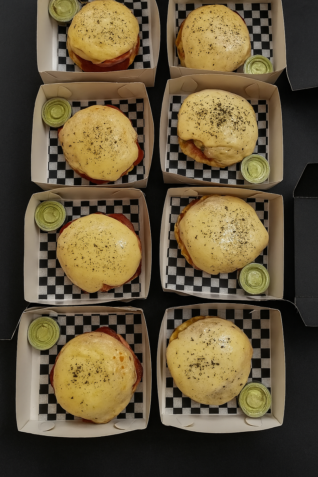 • Sandwich gratinado especial de pollo, carne, tocineta ahumada, queso mozzarella, aderezo & sachet de salsa